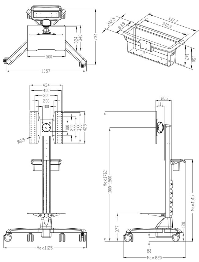 ABtUS Height Adjustable Mobile Stand is a perfect solution to all your digital display and presentation needs. The rolling mobile stand is ideal for safely and securely moving fl at panel displays up to 52”, with universal or VESA mounting pattern up to 600x400. The moveable TV stand has 1125mm overall height and it’s fully mobile with 4 heavy duty lockable casters. Handle design makes mobility much easier and smoother. An equipment shelf is included for anything from laptop, DVD player, projector etc. with weight capacity of 15 kgs.
